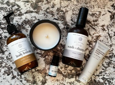 I love their lotions, face wash, beeswax candles, their kids line, essential oils and glass diffuser.