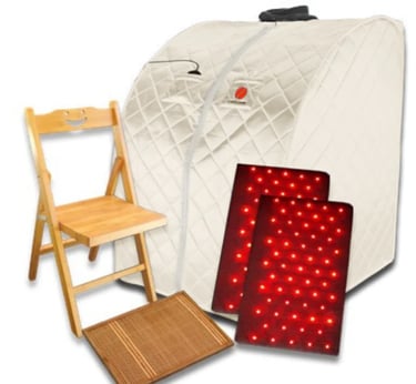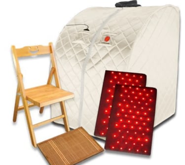 A portable infrared sauna that you can collapse up and put in a closet. The Therasage Thera360 Full Spectrum Sauna is the only portable sauna that offers full-spectrum infrared, negative ions, earthing, and no EMF.