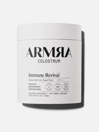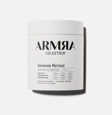Armra's grass-fed colostrum has over 400+ functional nutrients in their most pure and bioavailable form. It optimizes your microbiome, activates cellular health, and strengthens your body’s barriers to help your body protect against everyday chemicals, pollutants, allergens, and processed ingredients.
